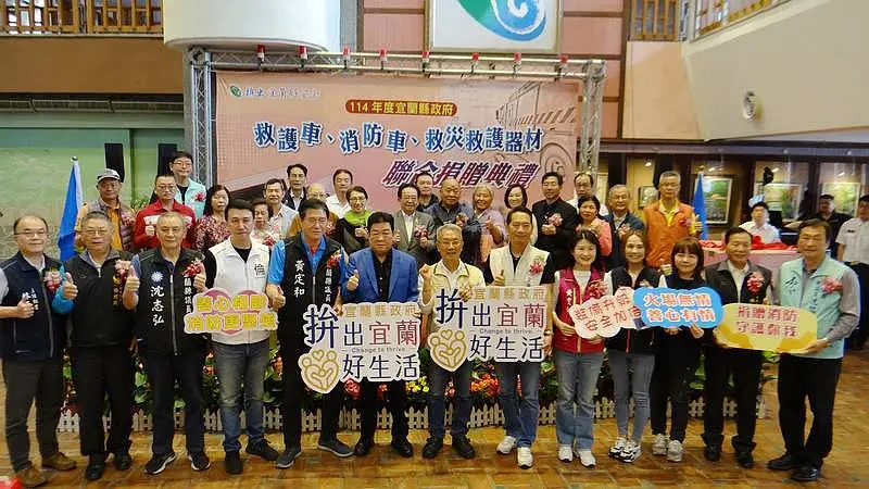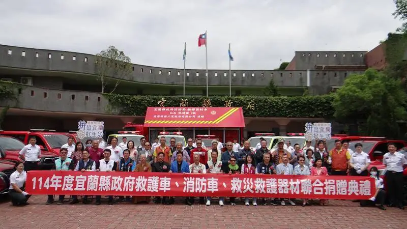 為強化災害應變能量,宜蘭縣今(15)日舉辦一場溫暖人心的「消防車、救護車及救災救護器材聯合捐贈典禮」,來自縣內外共18組捐贈者齊聚縣府,為守護家園盡一份心力。現場充滿感恩氛圍,消防團隊與民間力量攜手,展現強大凝聚力。