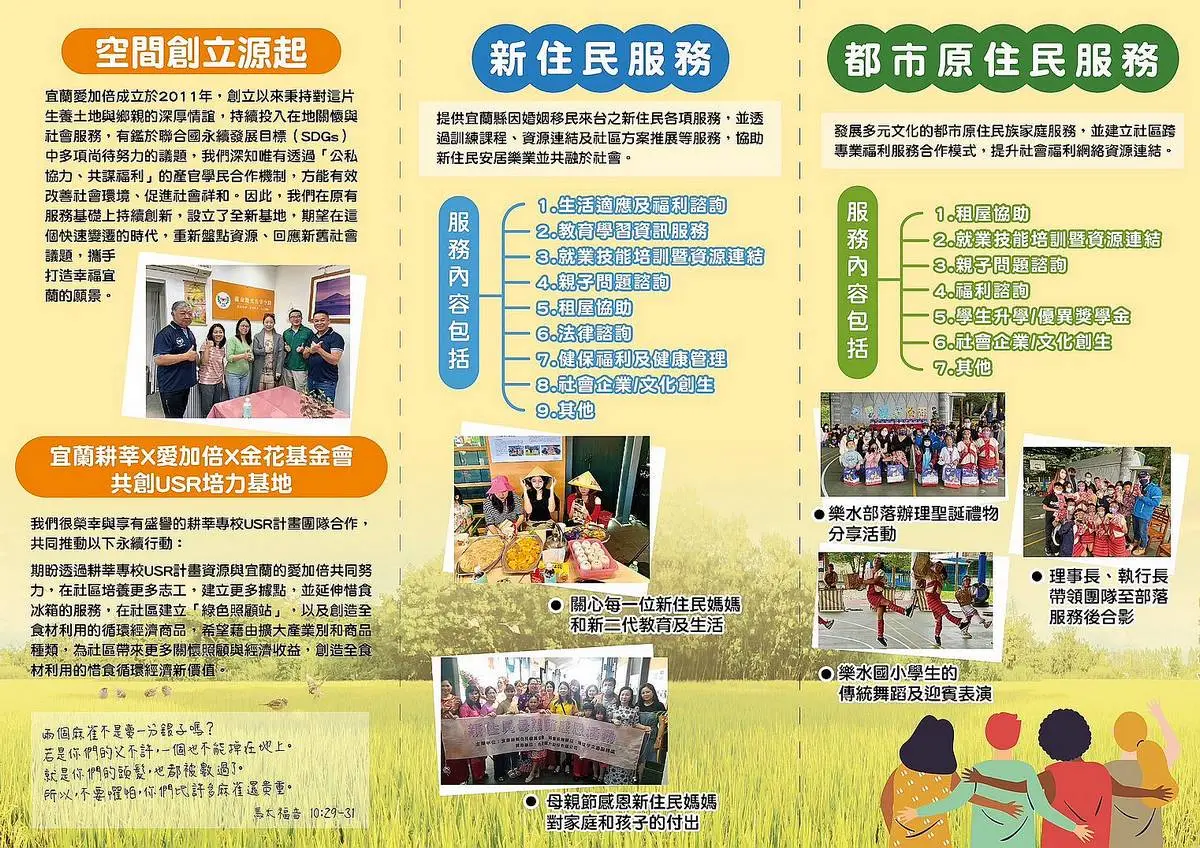 宜蘭縣愛加倍關懷協會已深耕宜蘭14年,長期關注弱勢群體的生活品質,並致力於提升宜蘭地區的整體社會福利。協會積極透過產官學民合作機制,改善社會環境,促進社會祥和。