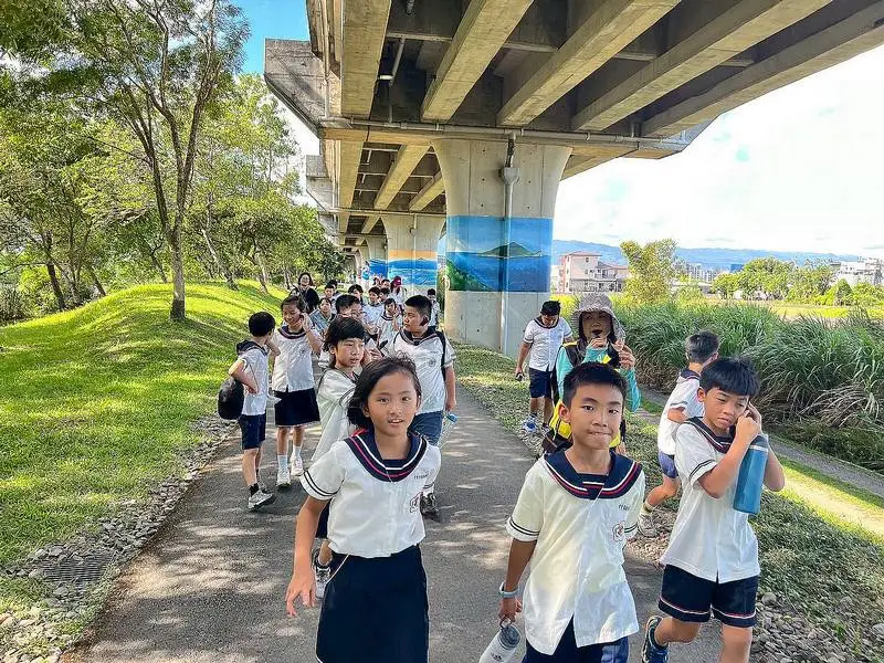 活動安排豐富,從鎮安廟的廟宇文化與祭典儀式,到鐵路高架橋墩彩繪的藝術之美,再到濁水溪治水紀念碑、舊蘭陽大橋、守橋塔台與水位風針塔,學生不僅走進歷史現場,也看見宜蘭城市發展的足跡。沿著鐵路側車道的人行步道與自行車道,孩子們邊走邊聽導覽,彷彿打開一本「會說話的教科書」。