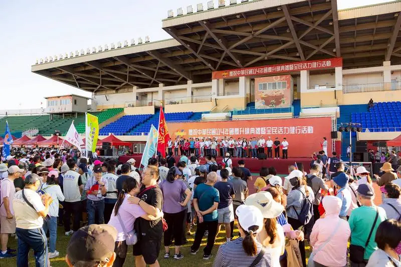 迎接中華民國114年國慶,宜蘭縣政府今(10)日上午在宜蘭運動公園田徑場盛大舉辦~「慶祝中華民國114年國慶升旗典禮暨全民活力健行活動」,由林茂盛代理縣長率領縣府團隊與上千名鄉親共同參與,場面熱鬧、氣氛振奮。