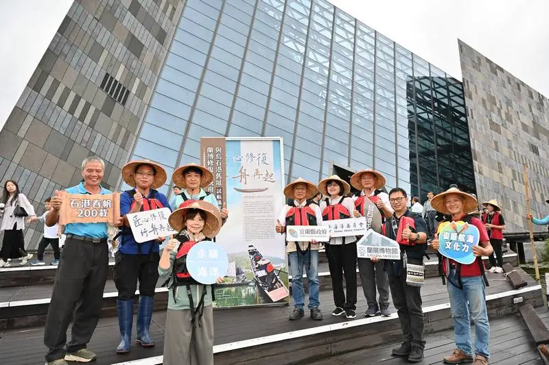 宜蘭縣立蘭陽博物館(蘭博)與海洋委員會攜手推動「宜蘭傳統舟船復振計畫」,10月26日於烏石港舊址舉行「傳統舟船修復試航儀式」,象徵塵封百年的舟楫文化重新啟航。現場在湖光波影中展現宜蘭人與水共生的記憶,匠師技藝、學術研究與藝術展演交織成一場跨領域的文化復航。