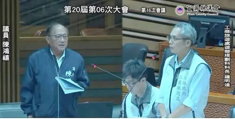 陳鴻禧議員指出,冬山河開放水上遊憩後,遊客人潮不斷,建議縣府應建立線上公告與QR Code入水登錄制度,以掌握使用人數及統計資料,強化安全與後續觀光推廣依據。他也提到,去年縣府舉辦的觀光產業推介會成效良好,應列為年度例行活動,「與其花大錢出國行銷,不如在國內推廣宜蘭特色,帶動在地業者收益」。