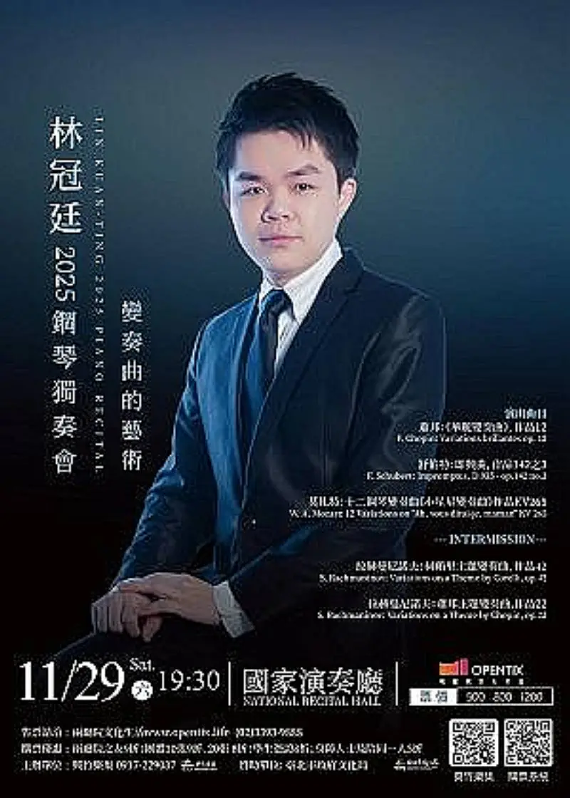 擁有莫斯科柴可夫斯基音樂學院最高演奏文憑博士的台灣鋼琴家林冠廷,11月29日將再度登上國家兩廳院演奏廳舞台,舉辦《林冠廷2025鋼琴獨奏會》,以「變奏」為題,呈現一場橫跨古典與浪漫的音樂旅程。