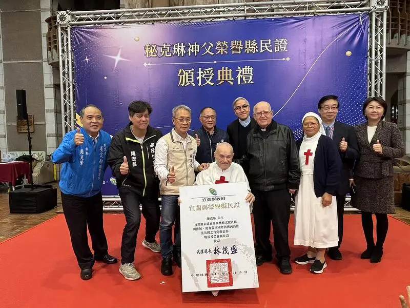來自義大利的秘克琳神父,自1964年踏上臺灣土地後,便將人生最精華的六十年奉獻給宜蘭。他以文化藝術為媒介,不僅見證、參與,也深刻推動宜蘭走向國際舞台,成為縣史上跨文化交流里程碑的重要人物。為表彰其卓越貢獻,宜蘭縣政府今(26)日上午舉行授證典禮,由代理縣長林茂盛親自頒贈「宜蘭縣榮譽縣民證」,以最高敬意向這位跨國付出者致謝。