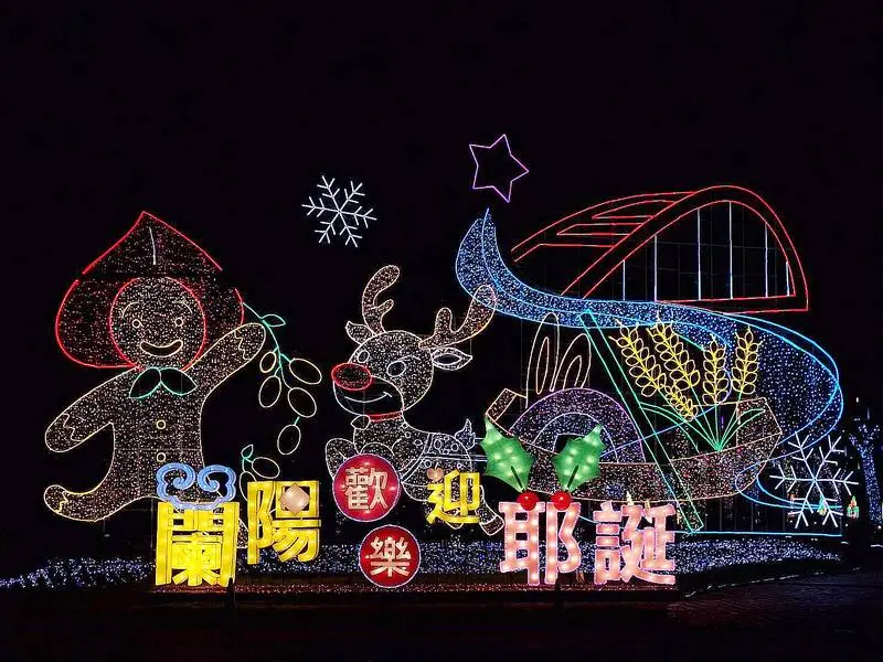 縣議會前方亦打造新的節慶燈景,以近9公尺高聖誕樹及薑餅人為主視覺,並融入三星蔥、金棗、段木香菇、牛舌餅等在地農特產,讓民眾在燈光下就能認識宜蘭風土。