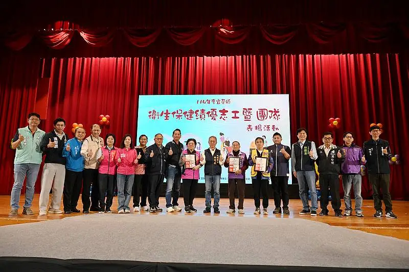 宜蘭縣政府今(29)日上午在宜蘭運動公園體育館舉行「宜蘭縣衛生保健績優志工暨團隊表揚」活動,今年不僅表揚123位表現突出志工與3支優良服務團隊,也特別頒發「銀髮奉獻獎」與「榮耀高齡獎」,向長年投入公共衛生服務的高齡志工致敬,展現「年齡愈長、愛心愈深」的生命力。