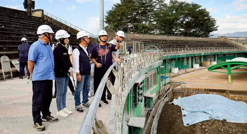 今日視察內容包含球員動線規劃、休息室及重訓室改善、新設圍欄、防撞墊、壘包更新、紅土草皮調整、排水系統改善,以及觀眾看台屋頂與遮雨設施等項目。縣府後續也規劃增設夜間燈光設備、擴充看台座位與球員置物空間,讓球場設備更符合比賽規格與使用需求。
