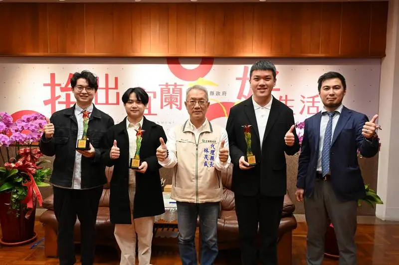 2025年iENA德國紐倫堡國際發明展傳來捷報,三名宜蘭縣民——李祐瑋、游子毅及楊佳豪——以兩項參展作品勇奪金牌與銀牌佳績,為臺灣、也為宜蘭爭取國際肯定。代理縣長林茂盛今日(12月11日)在縣長會客室接見三位得獎者,並代表縣府表達祝賀與勉勵。