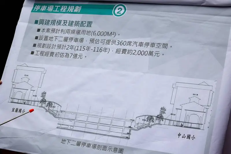 依規劃內容,地下停車場將利用約6,000平方公尺的操場空間,興建地下二層停車設施,預估可提供約360席汽車停車位。計畫將於115至116年編列2000萬元預算,完成規劃設計,並於116年爭取工程經費後啟動施作,預計年底進場施工,總工程經費估計約7億元,以因應未來都市發展所衍生的停車需求。