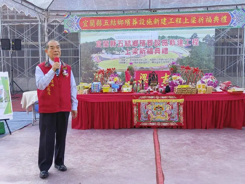 五結鄉公所推動多年的「五結鄉第一公墓納骨堂新建暨環保多元葬法園區興建工程」,於12月17日上午在第一公墓納骨堂建築基地舉行上梁祈福典禮,象徵主體結構即將完成,也標誌五結鄉殯葬設施更新計畫正式邁入新的里程碑。