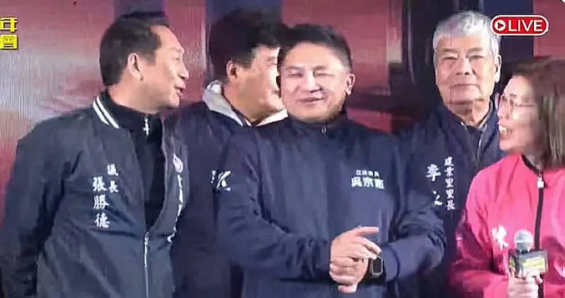 吳宗憲捂著口,「私語」張勝德。