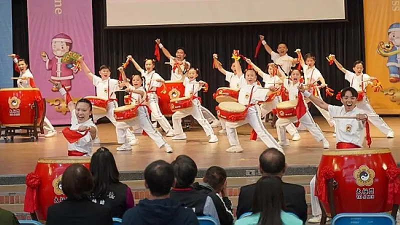 場外園遊會同步登場,結合中華文化特色設計互動攤位,透過擊鼓傳福、書籤卷軸創作、趣味健身闖關、笑臉彩繪與福袋抽獎,讓民眾在遊戲中體驗太極門倡導的健康、財富、智慧、快樂與幸福「五寶」理念,現場笑聲不斷。