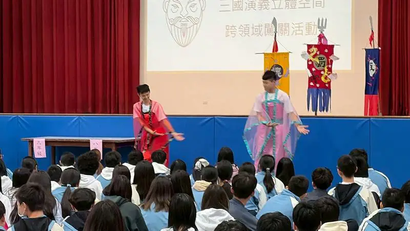 活動將原本平面的三國地圖立體化呈現,校內四棟教學大樓、五個場域分別化身為魏、蜀、吳三國及漢皇室,並結合校內美術班資源,設計製作三國情境旗幟,營造濃厚歷史氛圍,讓八、九年級學生沉浸其中。全校各領域教師共同投入,設計融合學科知識與多元智能的闖關關卡,包括國文的「成語三國」、數學的「將軍有令」、社會的「赤壁之戰」、自然的「百步穿楊」、英語的「穿越三國」,以及科技領域的「逃離華容道」電流急急棒等,讓學生在解題與挑戰中深化學習。