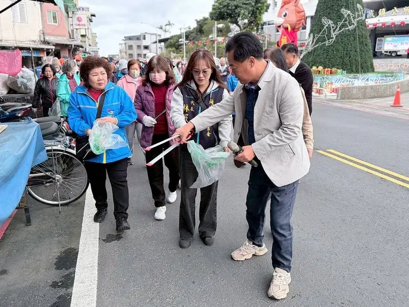 大掃除活動由鎮公所行政中心前廣場同時出發,規劃兩條清掃路線,一組行經火車站周邊街道,另一組則沿慶元宮及和平老街一帶進行環境整理,涵蓋市區重要動線與觀光節點,全面清除街道髒亂死角,讓市容在春節前煥然一新。