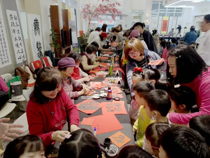 活動現場氣氛熱絡,不同於市售印刷春聯的制式樣貌,書畫班老師們一筆一畫皆展現多年書法修習所累積的細膩筆韻與沉穩氣度,使每一副春聯都成為獨一無二的新春祝福,吸引不少鄉親駐足欣賞、索取珍藏。