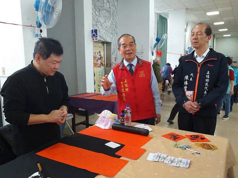 同日上午,五結鄉公所於三樓禮堂舉辦「馬到五結接福運-名家揮毫送春聯」活動,由五結鄉立幼兒園舞蹈表演揭開序幕,現場氣氛喜氣洋洋。主辦單位邀請黃朝松、吳政安、陳佩苓、朱啓仁、沈暨及黃建嵐等6位書法名家現場揮毫,提供350份手寫春聯免費贈送鄉親,並貼心準備紅包袋與暖心湯品,讓民眾在寒冬中感受滿滿祝福。