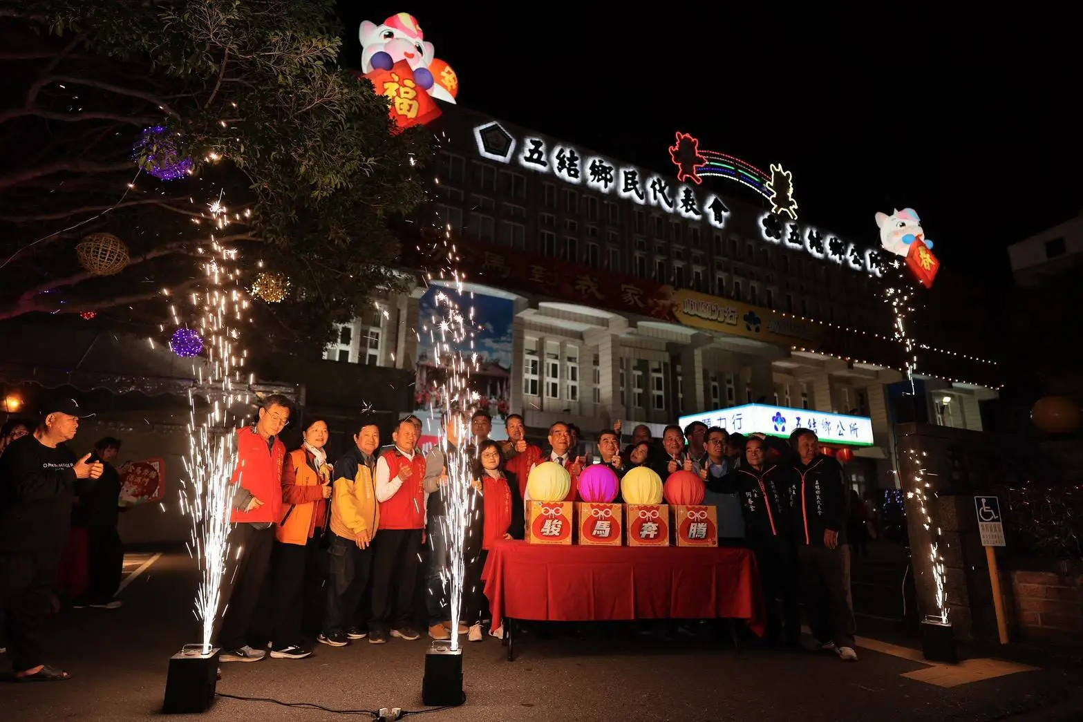 迎接馬年新春,五結鄉公所於新春期間推出年度主題燈飾佈置,以「馬抱蘋(平)安 攏馬有春」為設計主軸,結合可愛吸睛的馬年造型與象徵祝福的燈光藝術,點亮五結夜色,也為春節與元宵增添濃厚年味。燈飾點燈活動於115年2月9日晚間6時在五結鄉公所一樓廣場正式登場,吸引不少民眾前來共襄盛舉。