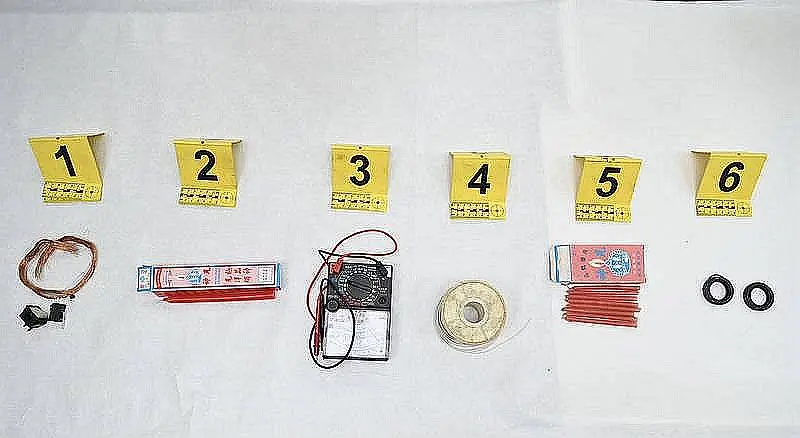 上圖/1:微動開關+銅線2:蠟燭3:電錶4:白色電線5:蠟燭6:油封宜蘭分局強調,對於任何危害公共安全的暴力行為,警方絕不寬貸,將持續強化情資蒐報與即時查緝作為,確保民眾生命財產安全,維護地方治安穩定。