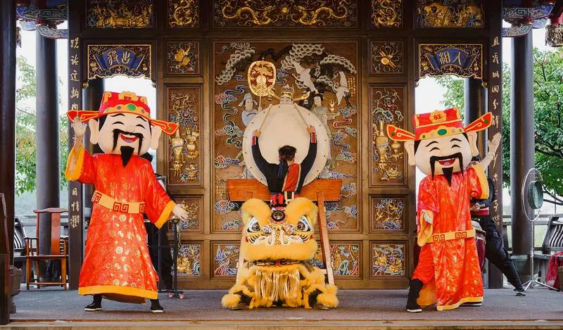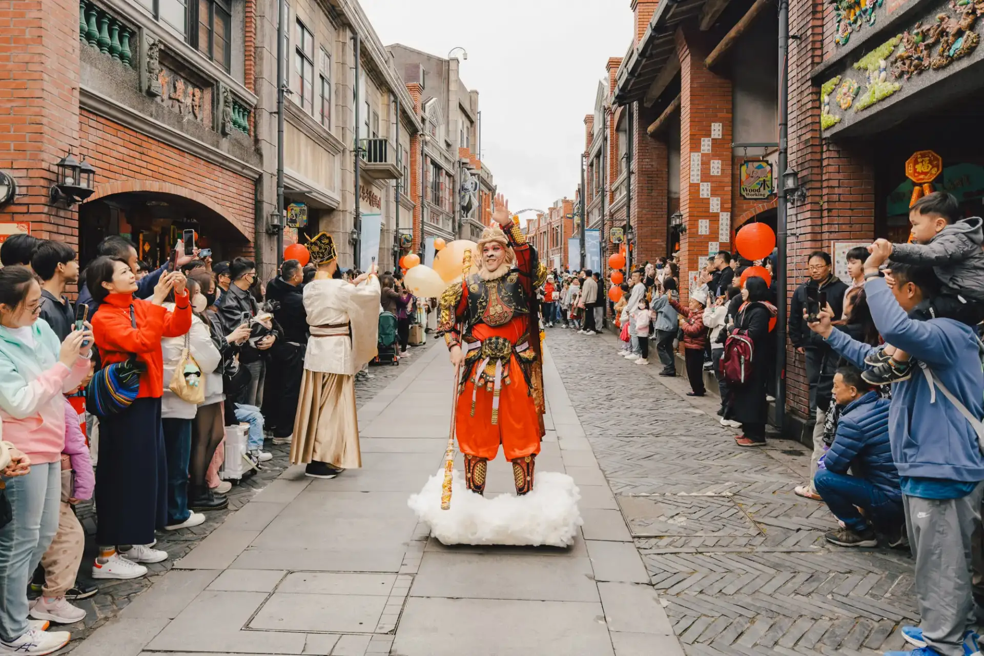 除戲劇演出外,園區內財神與金獅輪番踩街送福,Q版財神親切派送喜糖,吸引遊客爭相合影留念;文昌祠同步推出祈福活動,民眾透過跋杯、點燈與祈願儀式,為新一年祈求平安順遂與學業、事業好運。臨水街與中央廣場的「馬上好市集」,匯集開運商品、工藝手作與特色美食,也讓走春行程更添豐富層次。