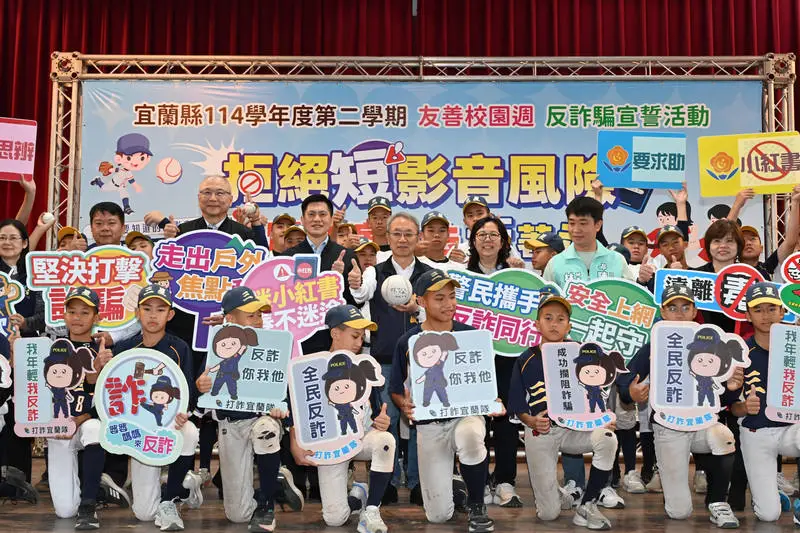 縣府指出,各級學校於友善校園週期間同步規劃多元創意宣導活動,從資訊素養、媒體識讀到防詐教育,全面強化學生辨識風險與自我保護能力。此次活動由三星國中承辦,現場安排拔河隊與棒球隊選手參與,在節奏明快的打擊樂聲中,象徵性擊倒「詐騙九宮格」,宣示校園防詐反詐正式啟動,展現齊心守護校園安全的決心。