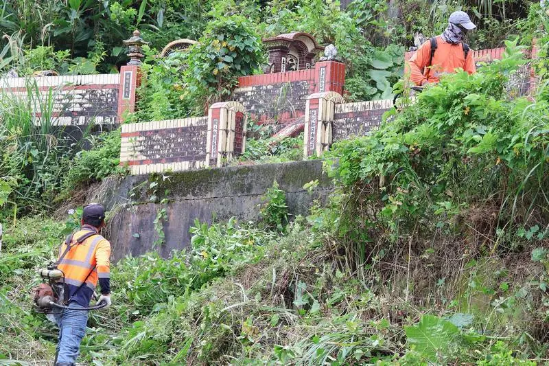 此外,現場亦提供紙錢集中焚燒服務,並備有鐮刀、長柄刀及鋸子等除草工具供民眾免費借用,同時安排機動除草人力,協助整理墓區道路與周邊環境,讓掃墓過程更加順暢。
