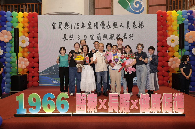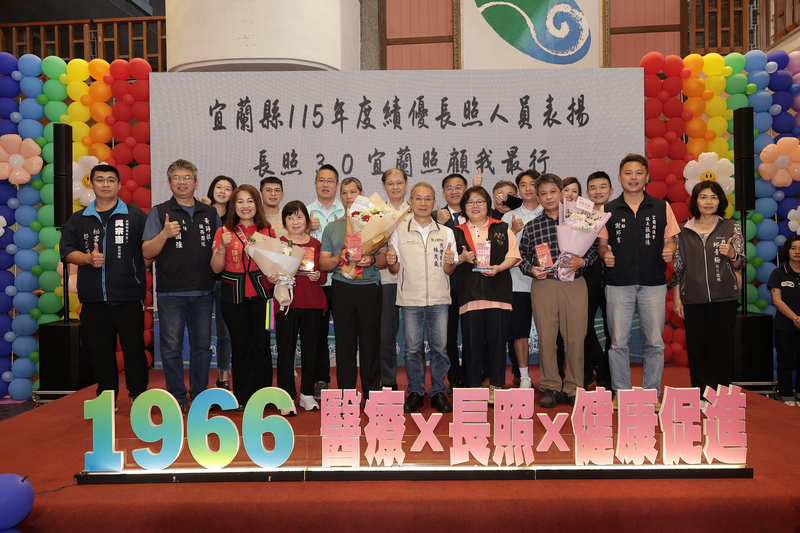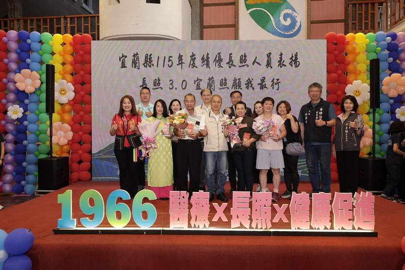 宜蘭縣政府於今(18)日在縣民大廳舉行「115年度績優長照人員表揚典禮」,以「長照3.0.宜蘭照顧我最行」為主題,公開表揚66位來自居家、社區及住宿式機構的優秀長照人員,肯定他們長期深耕照顧服務的付出,並期盼吸引更多人才投入,共同強化在地照護量能。