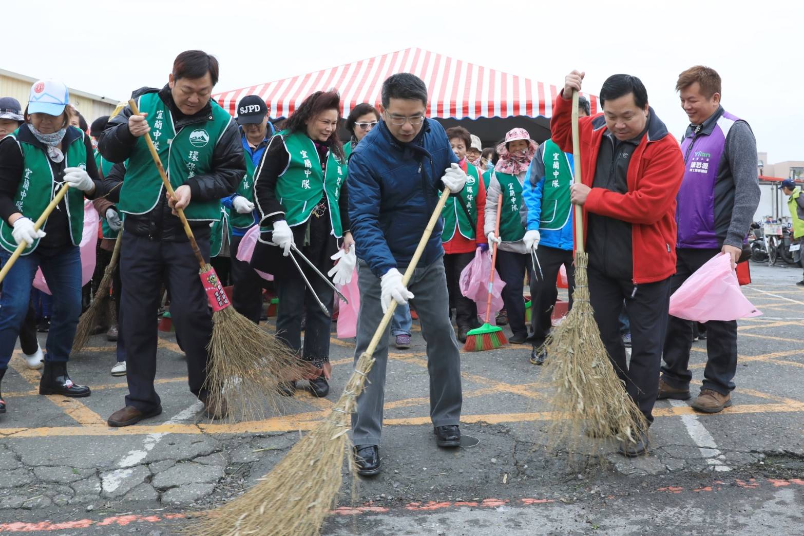 江聰淵市長與代表、里民們一起清潔環境。(照片/宜蘭市公所提供)