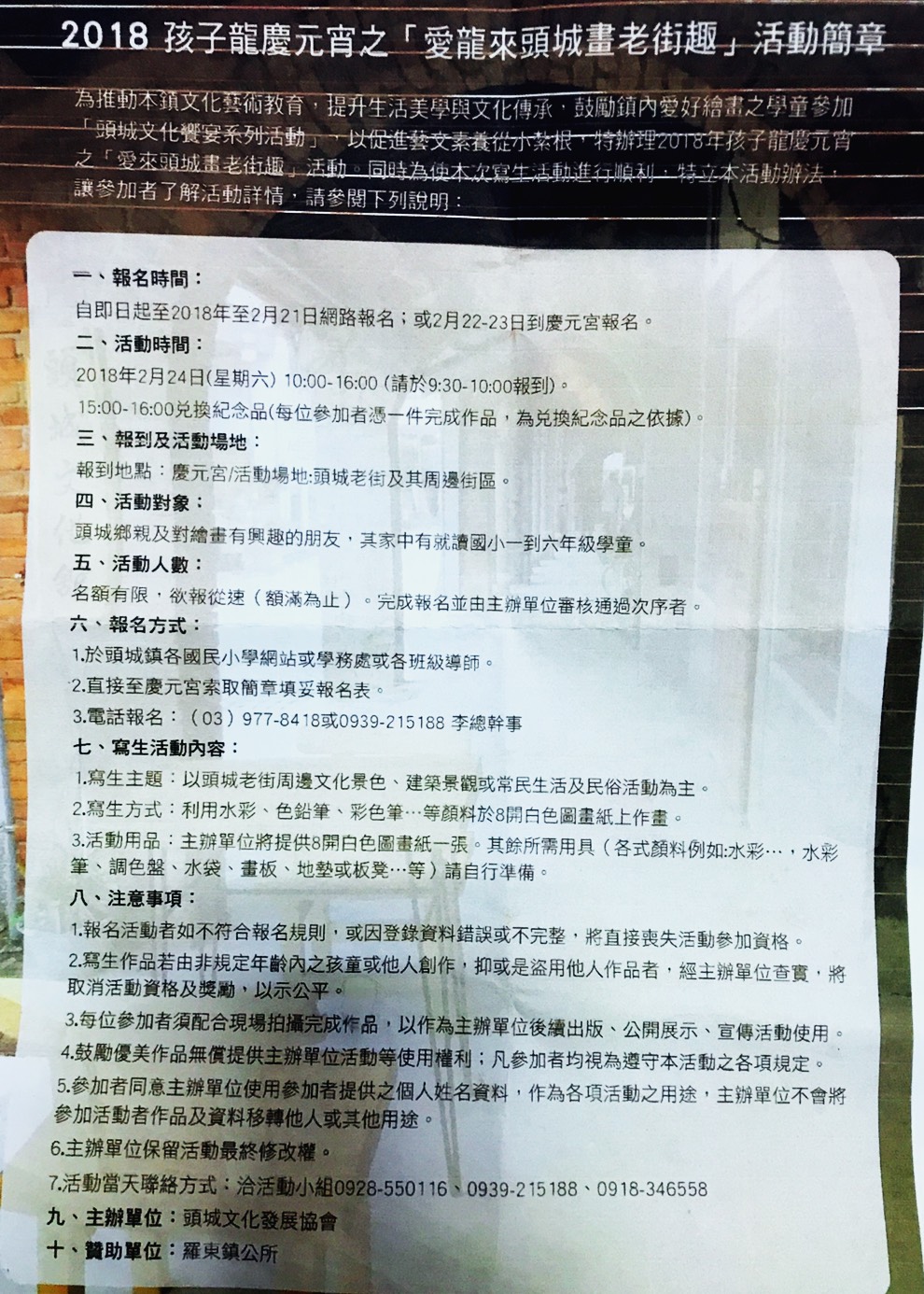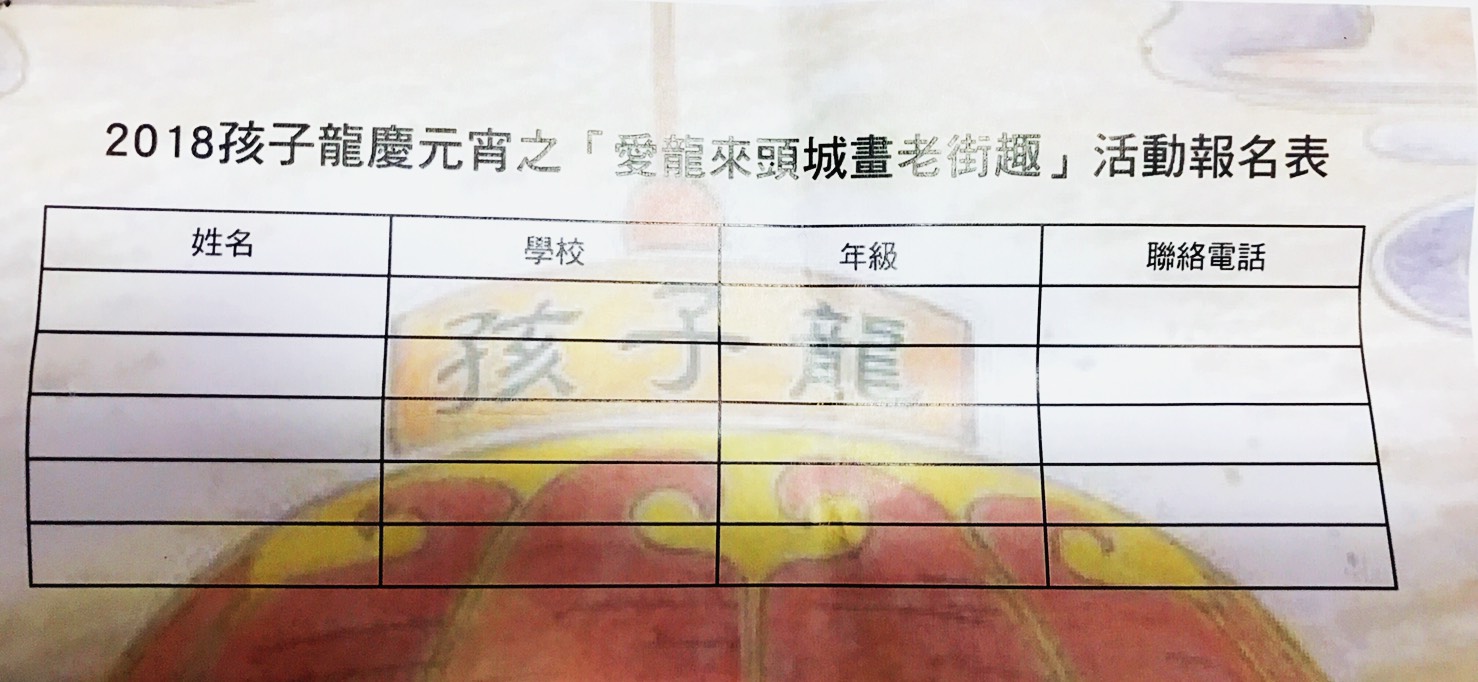 『愛龍來頭城畫老街趣』報名表如上〈記者王名煒/攝〉