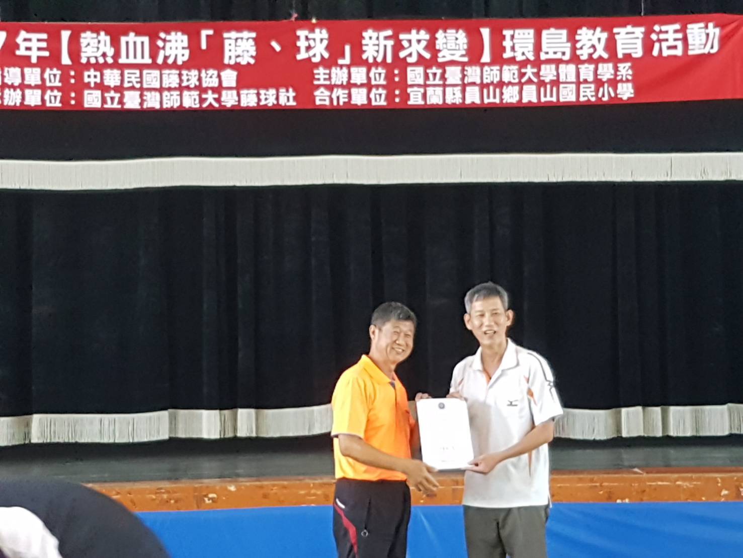為推廣藤球運動發展,中華民國藤球協會與國立臺灣師範大學體育學系合作,由10多位具備藤球專長及推廣熱忱的種子教練,以自行車環島方式往全台桃園、臺中、彰化、臺南、屏東、臺東及宜蘭等7縣市之國中小校園7縣市辦理11場校園推廣活動,今(15)日教練團來到最終站─宜蘭縣員山國小,並邀請曾於全民運動會踢毽項目榮獲第一名的廣興國小陳鐘金校長及前藤球國家隊教練再興中學徐聖明老師共襄盛舉。