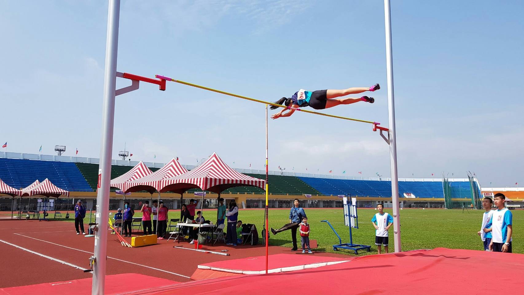 - 高女撐竿跳高,林芷涵(宜商),成績02M。
