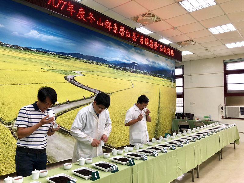 【記者林周龍/宜蘭報導】冬山素馨紅茶分級評鑑,今(15)日在鄉公所舉辦,參與評鑑分級的茶農共計20戶,參評點數共計52點,並邀請行政院農業委員會茶業改良場邱垂豐副場長及潘韋成股長蒞臨品評,並依紅茶茶樣香氣、外觀、水色及品質予以分級(金鑽獎、銀鑽獎、珍鑽獎),最後由洪銀祥、藍枝財、林文彬獲得最高榮譽金鑽獎。