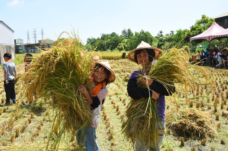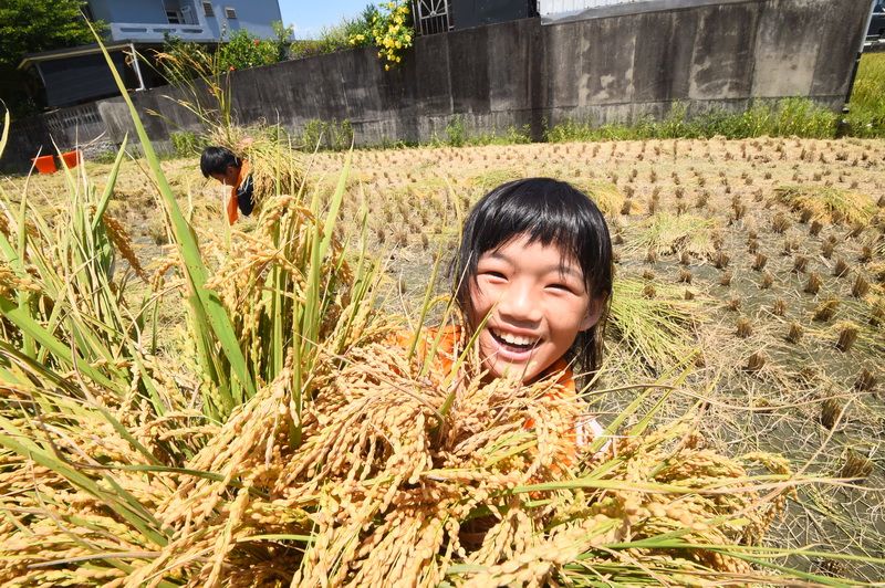 今天上午冬山鄉順安村永興路與清溝路路口田區,一群順安國小男女學童,捲起褲管走入稻田,手裡拿著鐮刀在地農的指導下學習割稻及利用機器桶(脫殼機)、打穀,這是現在都市學童不曾有過的體驗,學童們用雙手收割稻米,還用腳踏方式讓稻穗與稻穀分離,下田體驗收割稻米才體會豐收的喜悅及農夫耕種的辛苦。