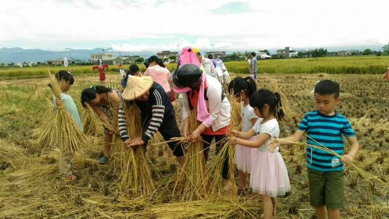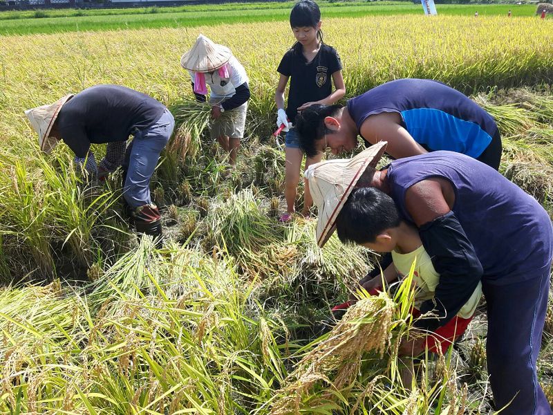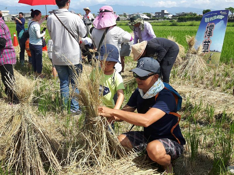 【記者林周龍/宜蘭報導】目前正值蘭陽平原稻子收割季節,為讓小朋友體驗以前農業社會割稻的景象,也讓大朋友回味昔日農村生活,五結鄉公所今(21)日上午在五結路與孝威路交叉口的農田上舉辦「割稻趣活動」。