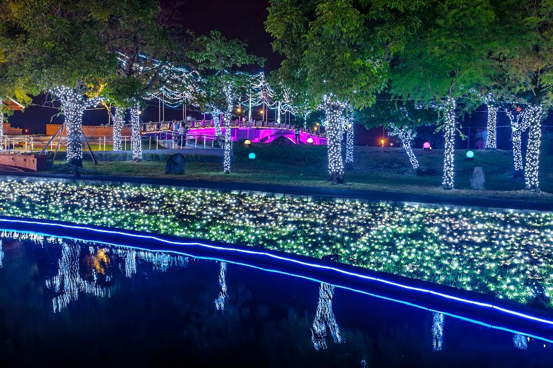 【記者林周龍/宜蘭報導】2018宜蘭國際童玩藝術節今年推出大量體的水域設施與高規格的服務品質,受到遊客青睞,入園人次截至目前已突破35萬,台中市長林佳龍今(15)日特別帶領花博石虎家族來訪取經,並與童玩團隊進行交流。同時,2018宜蘭情人節活動已於昨(14)日試點燈,吸引大量遊客及攝影同好,率先體驗安農溪分洪堰與銀河鵲橋浪漫氛圍。
