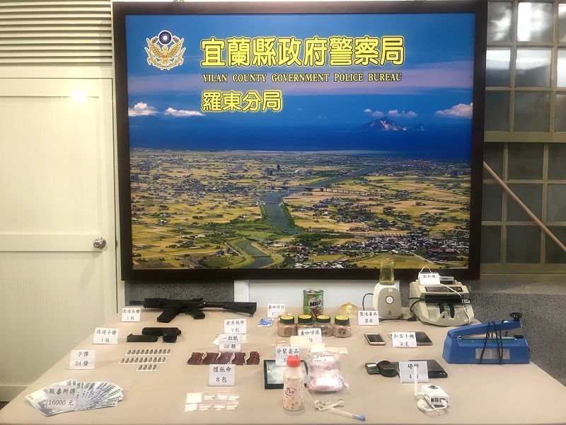 【記者林周龍/宜蘭報導】羅東警分局昨(22)日破獲陳姓男子為首販毒集團,起出長短槍2支,子彈24顆及安非他命,愷他命,毒咖啡包的毒品,經偵訊後,全案依違反犯罪組織,毒品危害防制,槍械彈藥管制條例等罪嫌,將陳姓男子及6名同夥,移送宜蘭地檢署偵辦。
