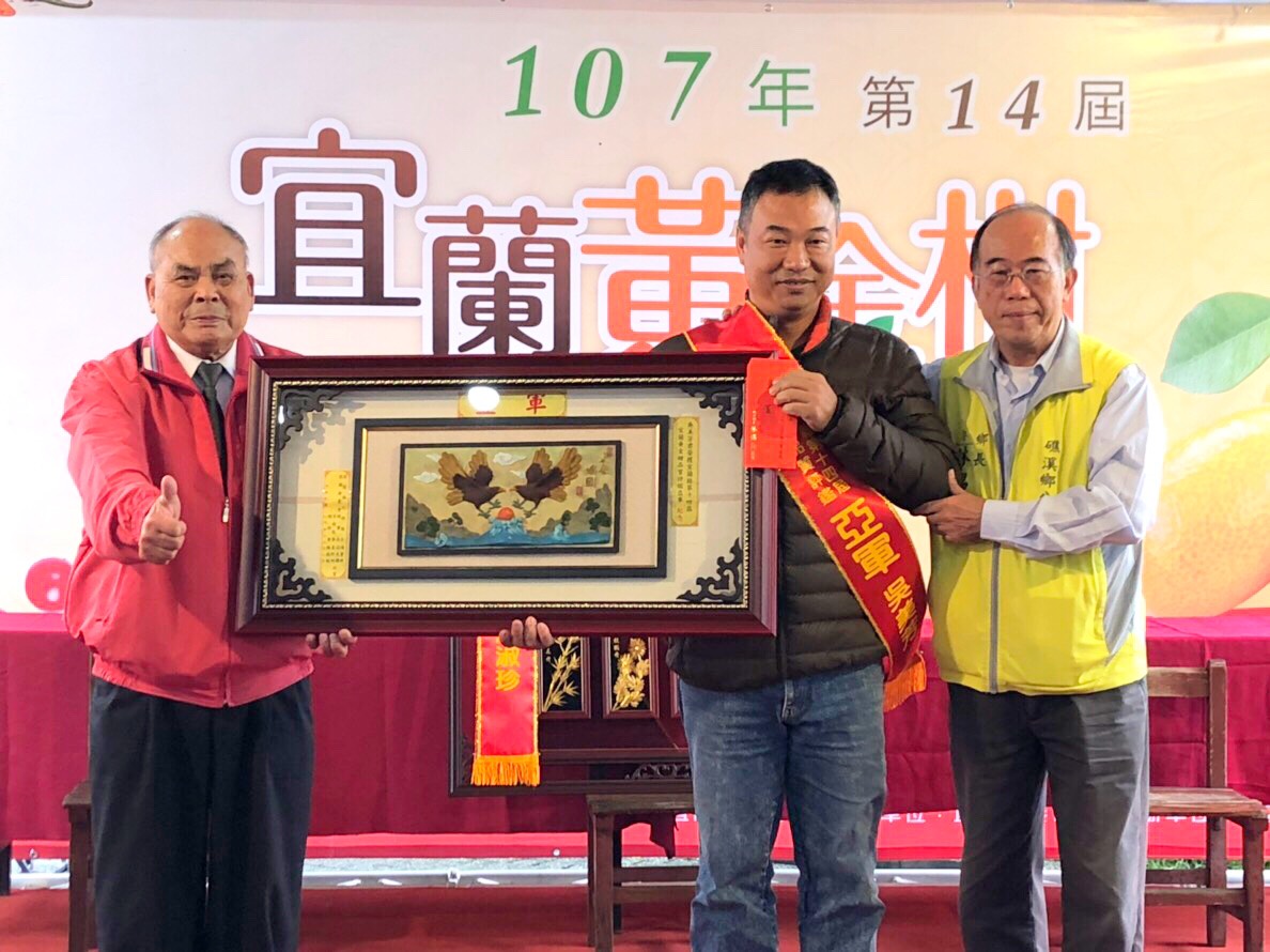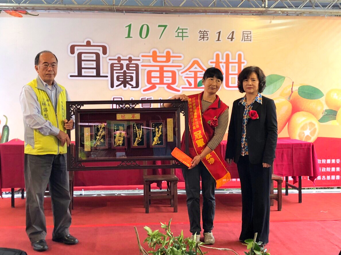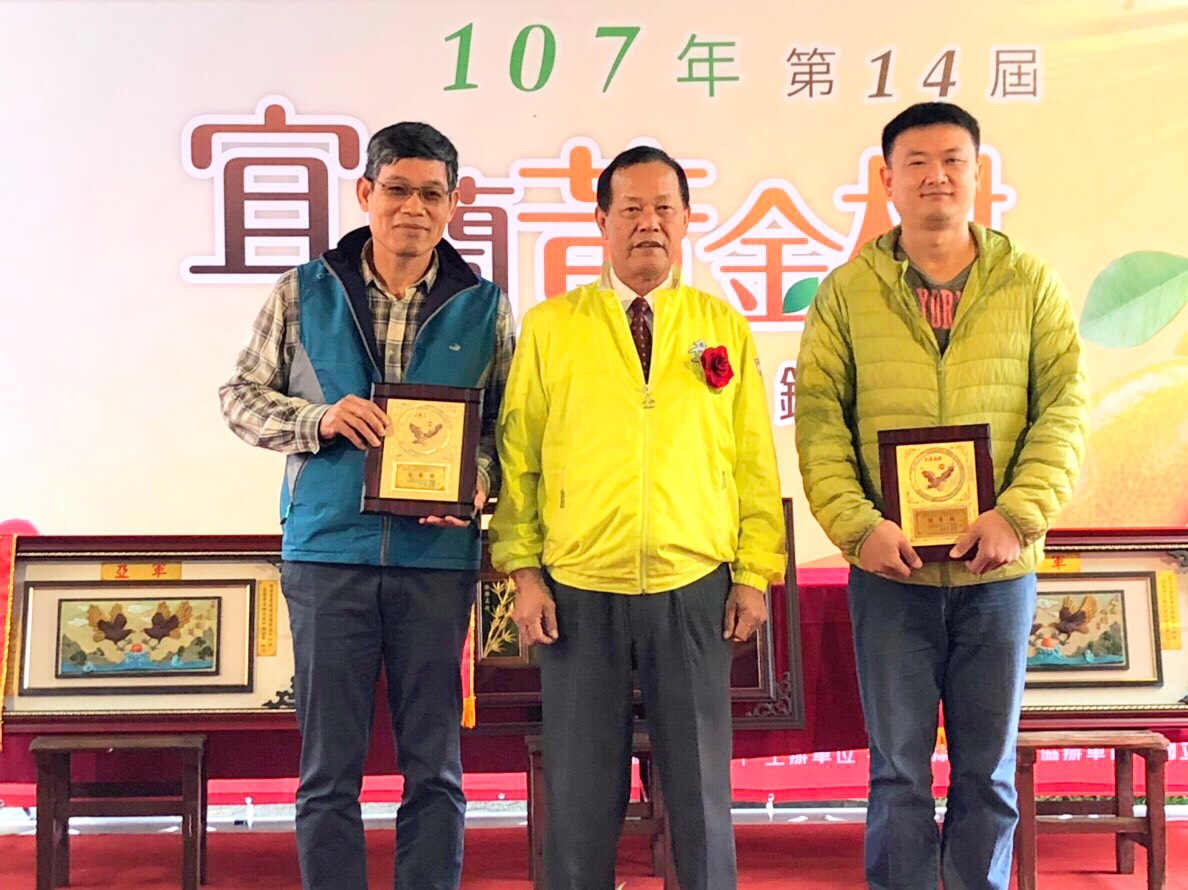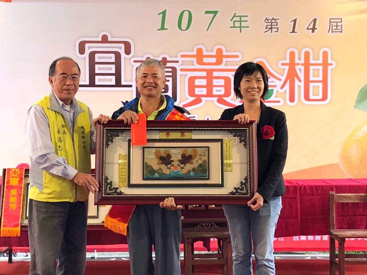 農業處副處長李芳菁(右)及礁溪鄉長林錫忠與季軍合影。
