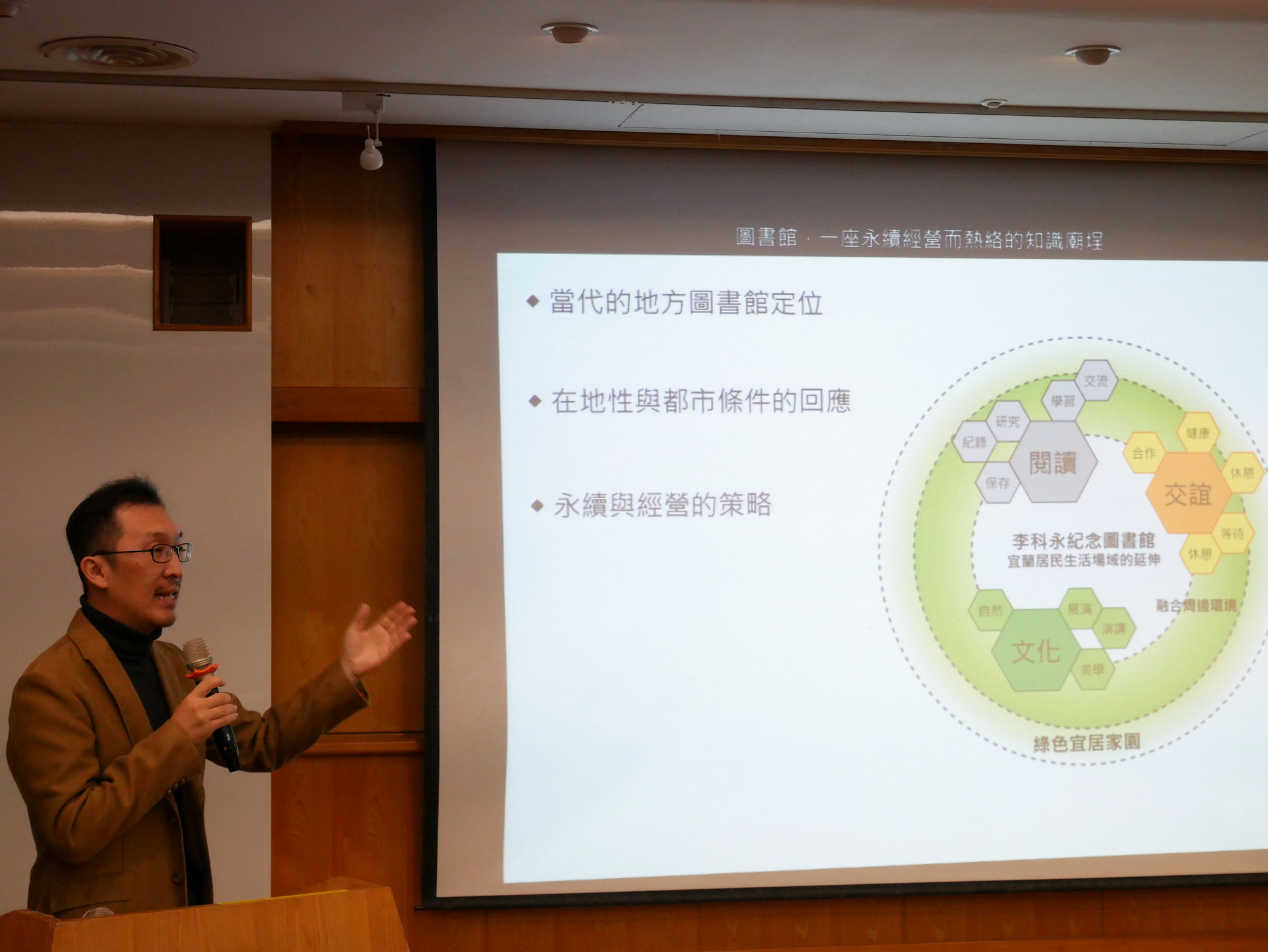 張匡逸建築師簡報李科永紀念圖書館規劃設計。