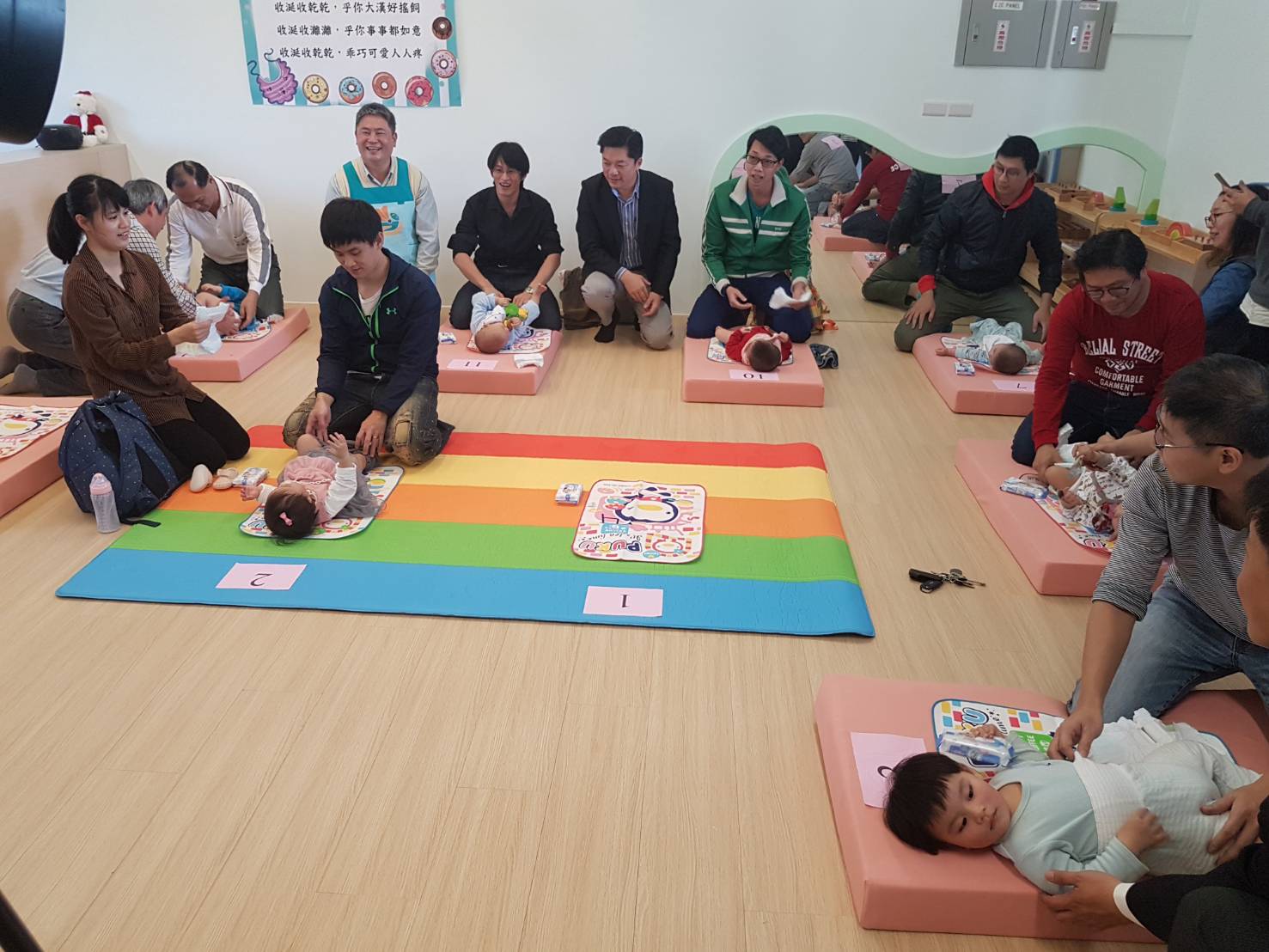 今天開幕儀式活動除了邀請華國非營利幼兒園舞蹈開場表演外,還進行收涎好搖飼及童心協力-換尿布比賽,讓場面既溫馨又開心。