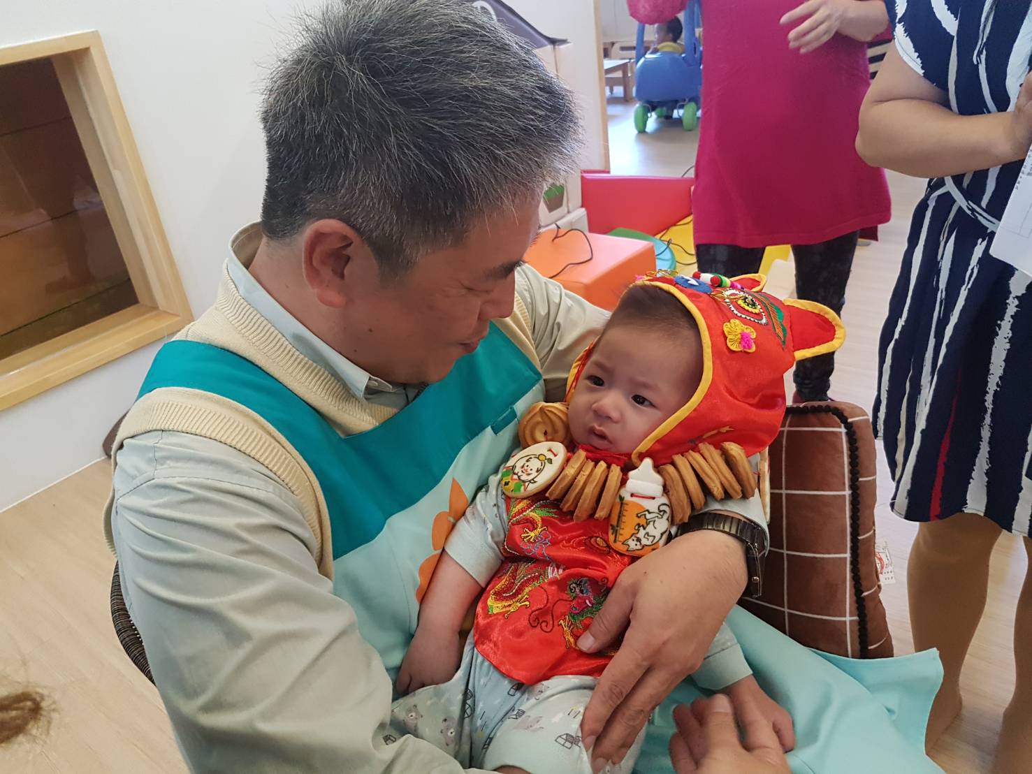 楊秀川處長抱小孩收涎。(記者邱淑珍/攝影)