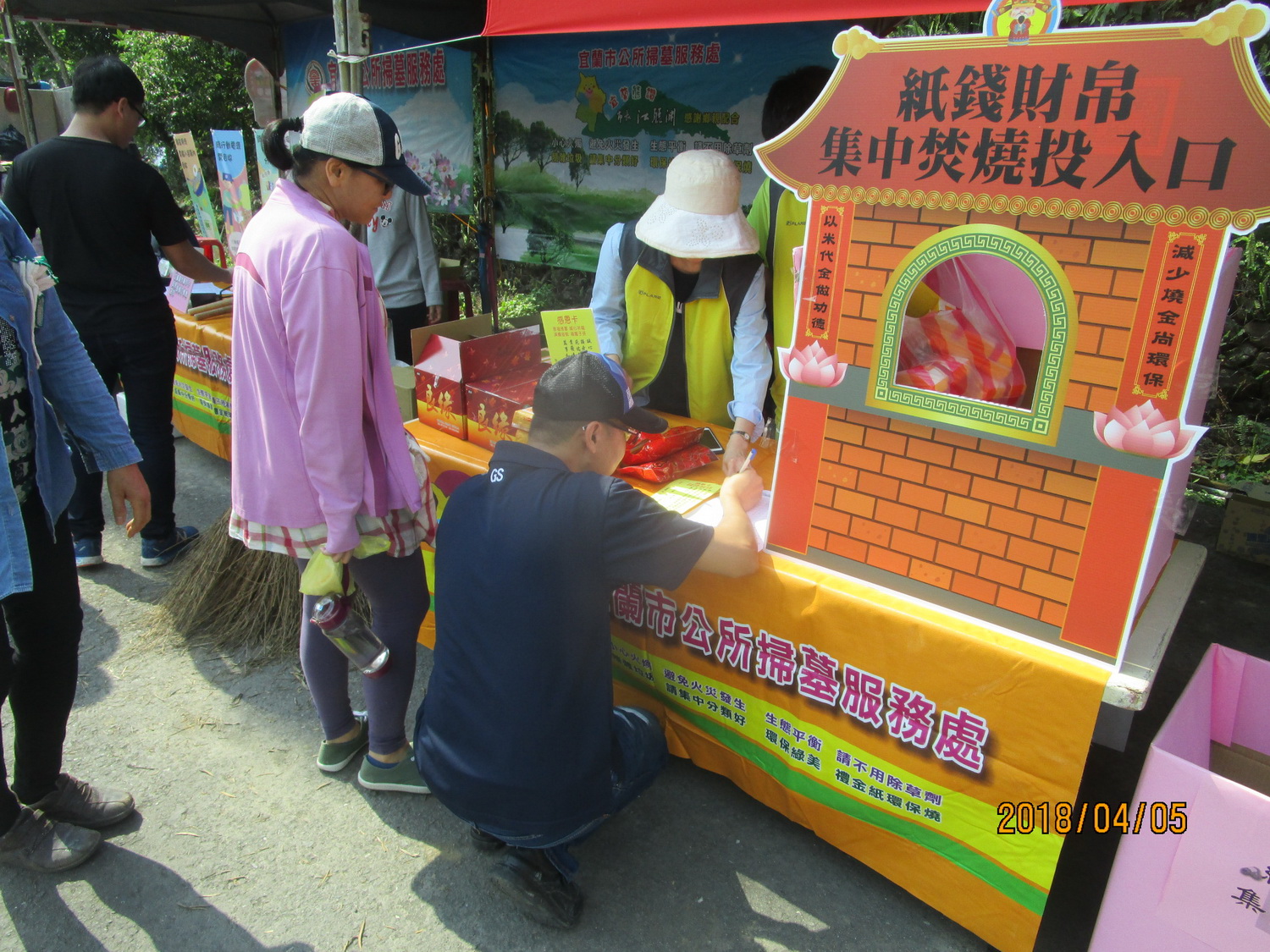 為了避免民眾過多的焚燒紙錢,也避免意外的發生,宜蘭縣政府環境保護局提倡「清明祭祖重誠心 減燒紙錢空氣清」,希望民眾可以選擇更環保的祭拜方式,達到敬祖感恩的心念,並維護環境品質及你我身體健康。