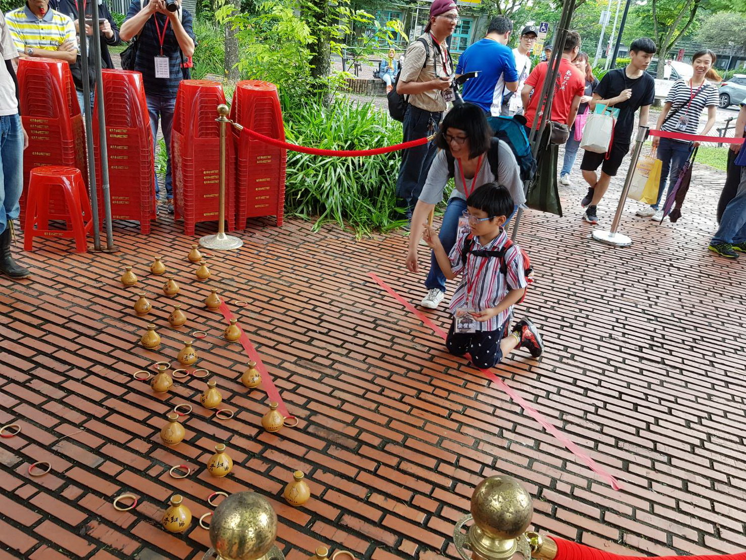 民眾參加套圈圈遊戲。(照片/記者邱淑珍攝)