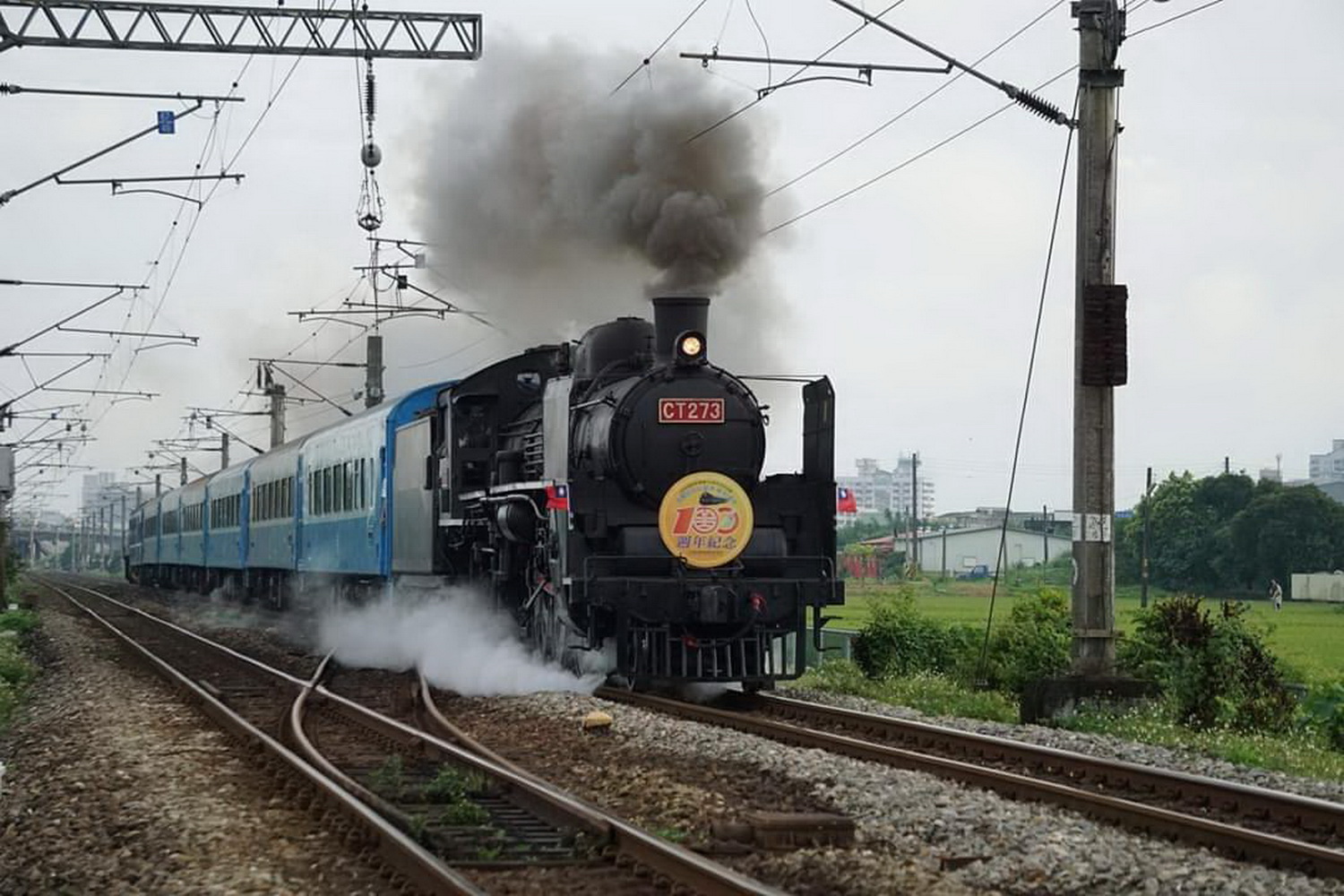 嘟嘟嘟 ! 火車來了 ! 為了慶祝臺鐵宜蘭線通車100週年,今(4)日台鐵蒸汽火車再次行駛於鐵道上,由「機關車女王」 (CT273) 載著中、日鐵道業者貴賓及旅客,從蘇澳起航至礁溪,除了讓旅客感受蒸汽火車的魅力外,也能回首宜蘭線百年風華。