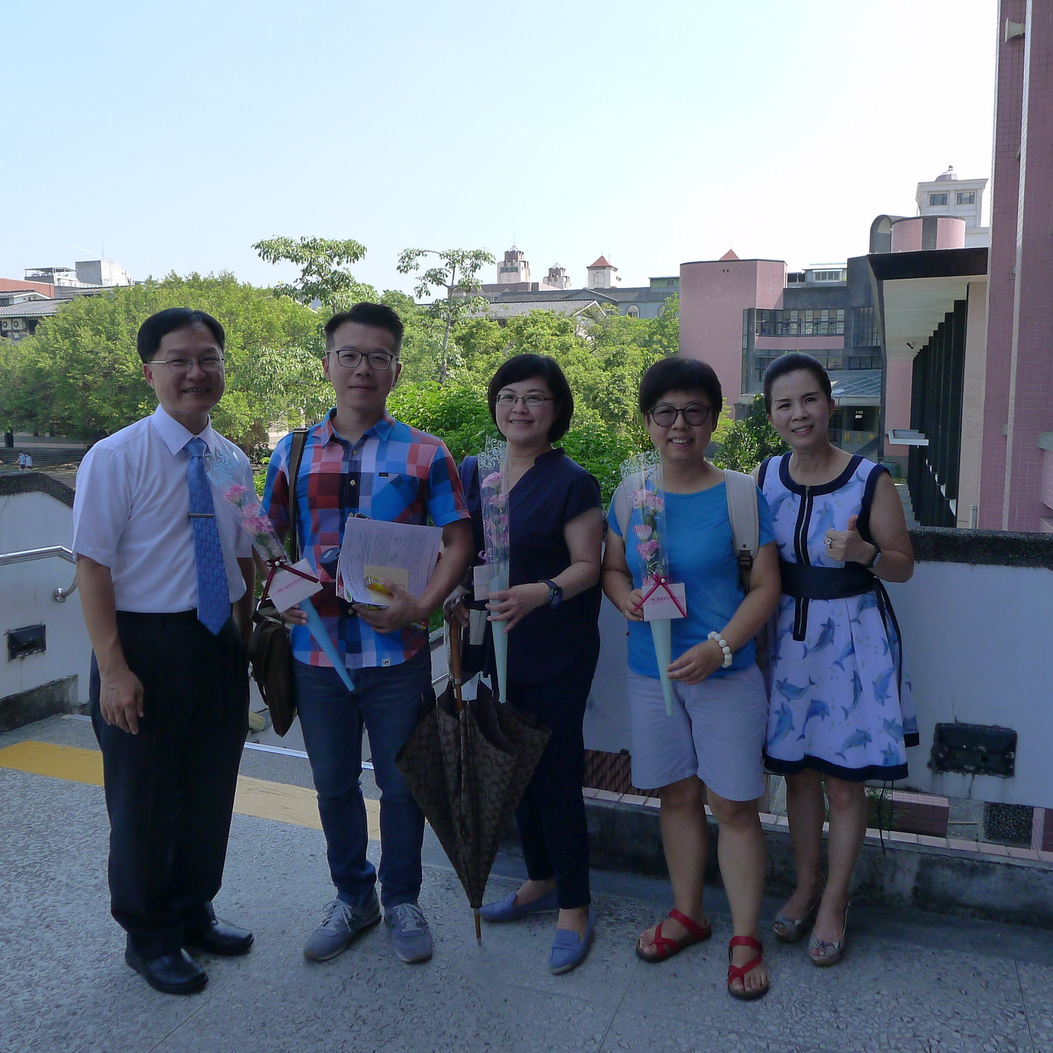 蘭陽女中家長會長林淑玲(右1)鮮花一束代表全體家長對老師們的感恩。(照片/蘭女提供)