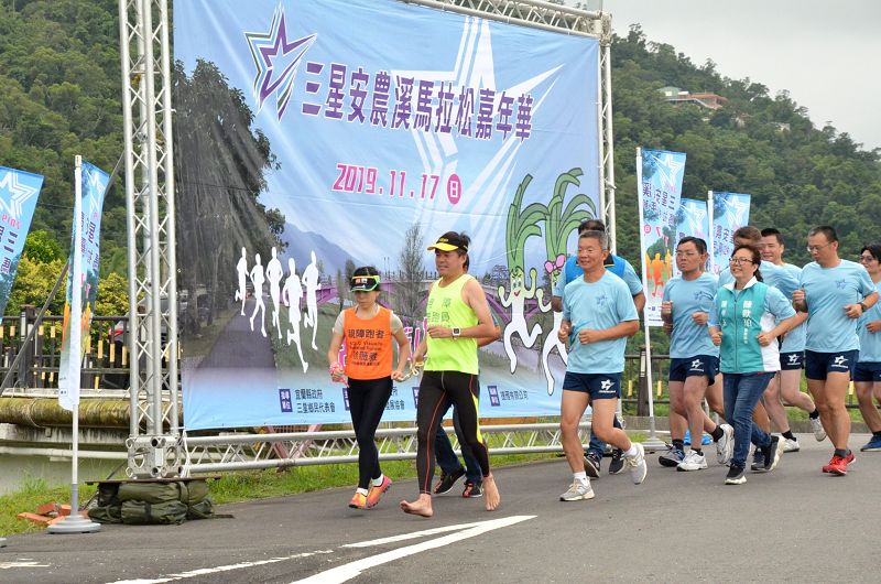三星鄉長李志鏞敬佩洪課長愛家愛妻愛馬拉松的精神,李鄉長更是鼓勵視障朋友可以藉由運動讓視力逐步恢復的神奇功效,提供前30名視障朋友免費參加三星鄉第一次辦理的馬拉松活動,超越另一個自我。