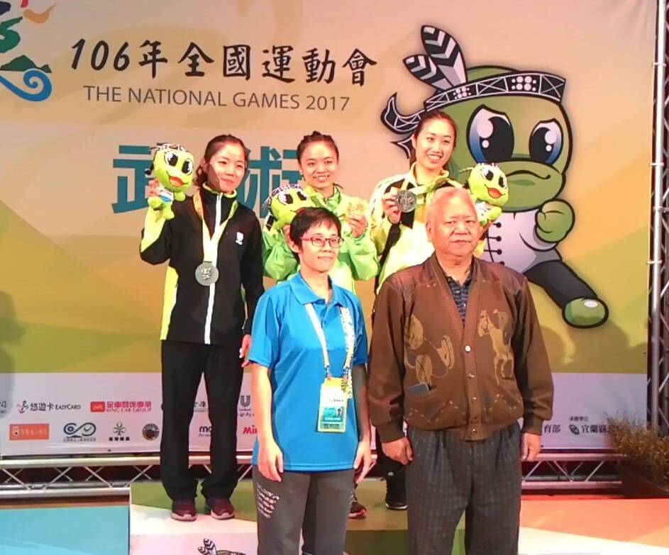 女子組武術 南拳/南刀全能項目:(左後起)桃園蔡文娟(銀)、宜蘭林芷妤(金)、新北饒惠萍(銅)。(照片/大會提供)。