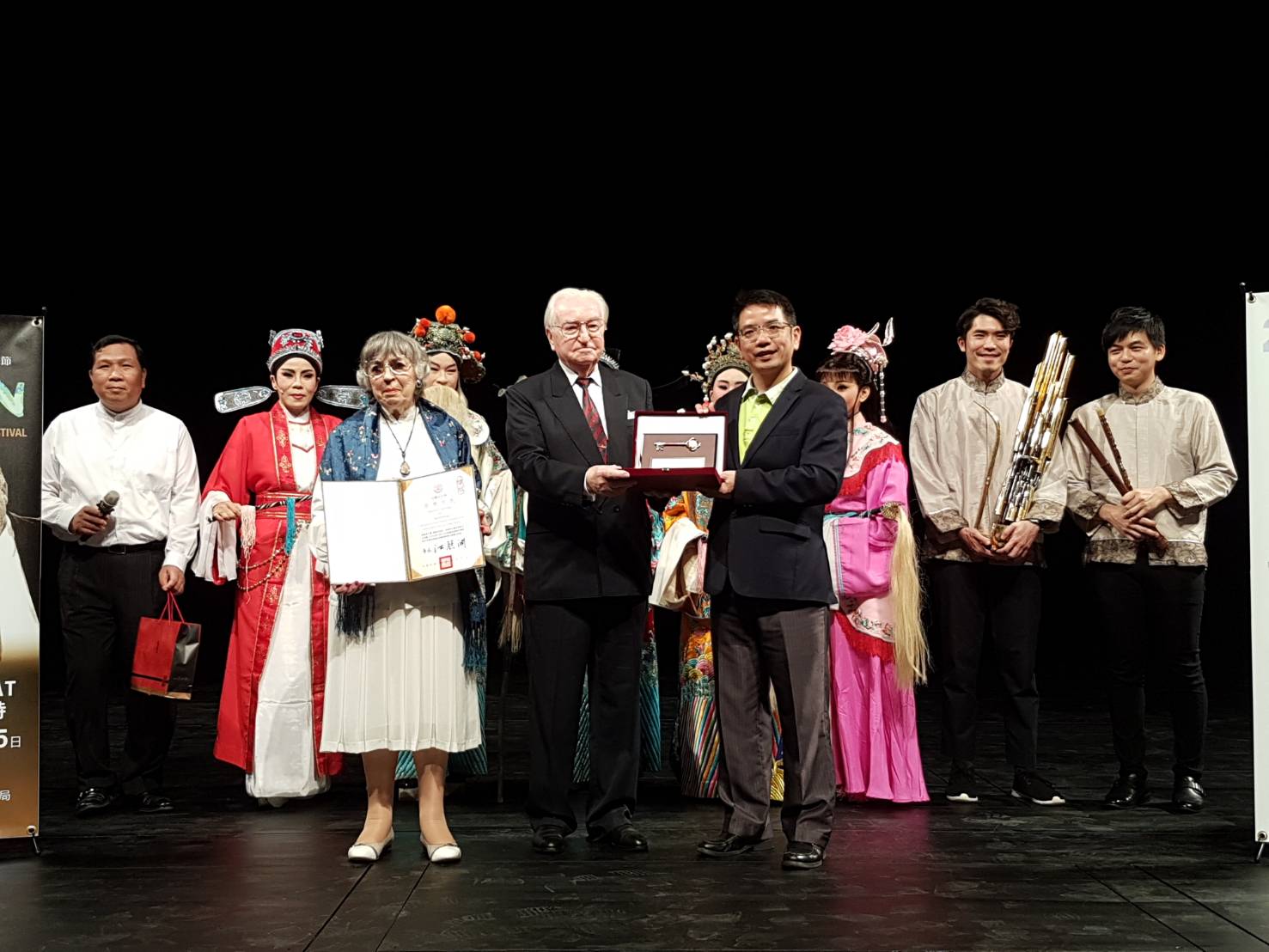 江聰淵市長致贈榮譽市民市鑰、獎狀給瑞士知名指揮家羅徹特,以表彰其貢獻。(記者邱淑珍/攝)