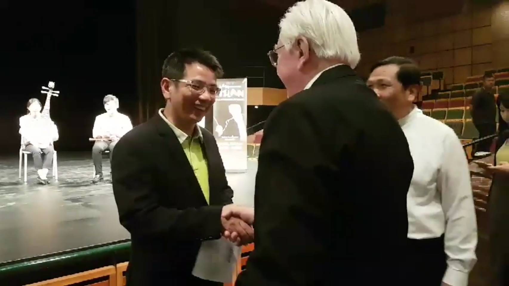 江聰淵市長與瑞士知名指揮家羅徹特相見歡。(記者邱淑珍/攝)
