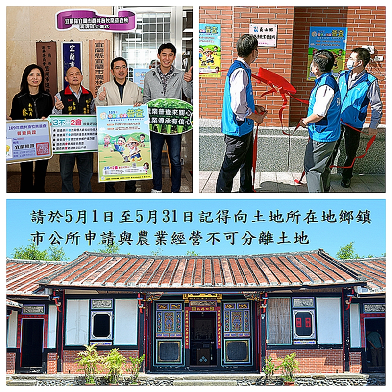 宜蘭市公所和員山鄉公所今(16)日分別成立農林漁牧業普查所,實地訪查工作將於110年5月1日至110年6月30日進行,採全面性普查,凡普查標準時期(109年1月1日至同年12月31日),經營農作物栽培、畜牧、農事及畜牧服務、林業、漁撈及水產養殖等生產與休閒活動之業者,均為這次普查訪查對象,普查將以「派員面訪」、「留置填表」及「網路填報」等三種調查填報管道進行訪查,普查所取得的資料,僅供政府整體統計分析應用,對個別資料絕對保密。