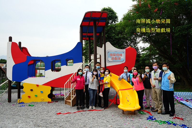 一座以「飛機造型」為主體新建之幼兒園 遊戲場,已經誕生在南屏國小,南屏國小早期是空軍宜蘭子弟學校,飛機可說是學校的精神象徵,造型罕見也深具意義。