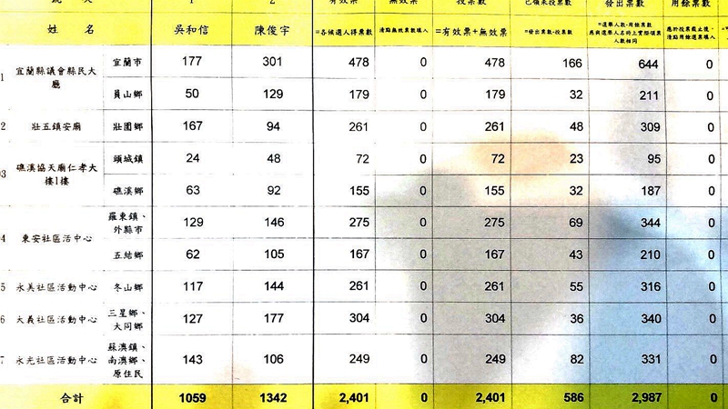 宜蘭縣這次縣黨部選舉競選十分激烈,發出的選票有2987票,沒有廢票,卻有586張已領未投票?由於兩位候選人的差距只有283 票,既是黨內選舉, 也已領取選票,為何未投?如果都投了下去選舉的結果會不會改觀?未投的原因耐人尋味?